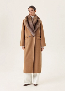 Классическое двубортное пальто из кашемира с соболиным воротником