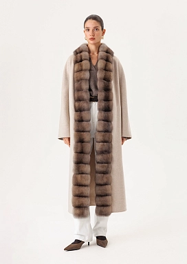 Мех соболя отлично сочетается с цветом кашемирового пальто.