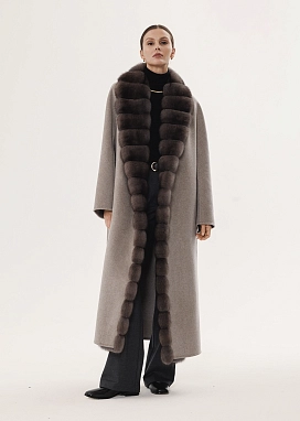Пальто в оттенке Тортора с отворотной опушкой из соболя