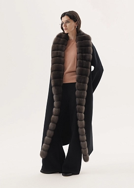 Пальто-халат из 100% двойного кашемира с меховой отделкой по всей длине изделия. Обновленная версия пальто получила усовершенствованный крой, а также еще более роскошную вариацию шалевого воротника, мягко переходящего в бортовую опушку.