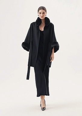 В изяшном пончо чёрный кашемир струится лёгкой драпировкой, а борта обрамляет эксклюзивная шиншилла глубокого ночного оттенка.