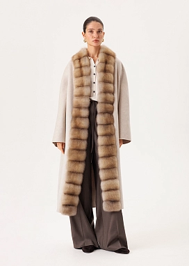 Кашемировое пальто с бортовой отделкой из натурального меха куницы