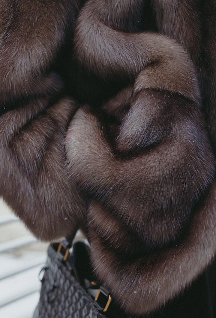 Полупальто из меха соболя с цельным шалевым воротником и цельными манжетами
