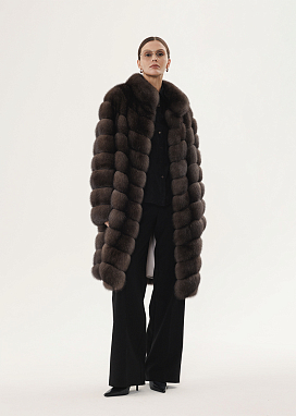 Шуба выполнена из меха баргузинского соболя итальянской выделки.
