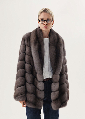 Соболиная шуба оттенка Tortora с диагональной раскладкой меха играет переливами света и создаёт динамичный женственный образ.