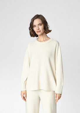 Джемпер из 100% шелковистой кашемировой пряжи в нежном молочном оттенке.