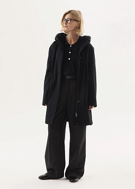 Теплая и невесомая кашемировая парка в безупречном угольно-черном оттенке с подстежкой из черной коротковорсовой норки.