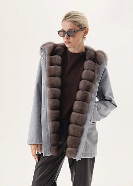 Роскошная подстёжка из соболя цвета Tortora, объёмный меховой капюшон с козырьком защищает от ветра, кулиска подчёркивает талию, а швейцарская фурнитура дополняет премиальный облик.